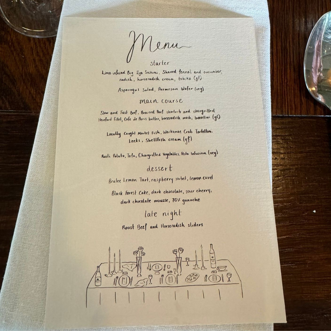 We worked together to create dinner menus, drinks lists and place card wrappers for chocolates that added a personal and handmade touch while staying true to their classic and refined style.