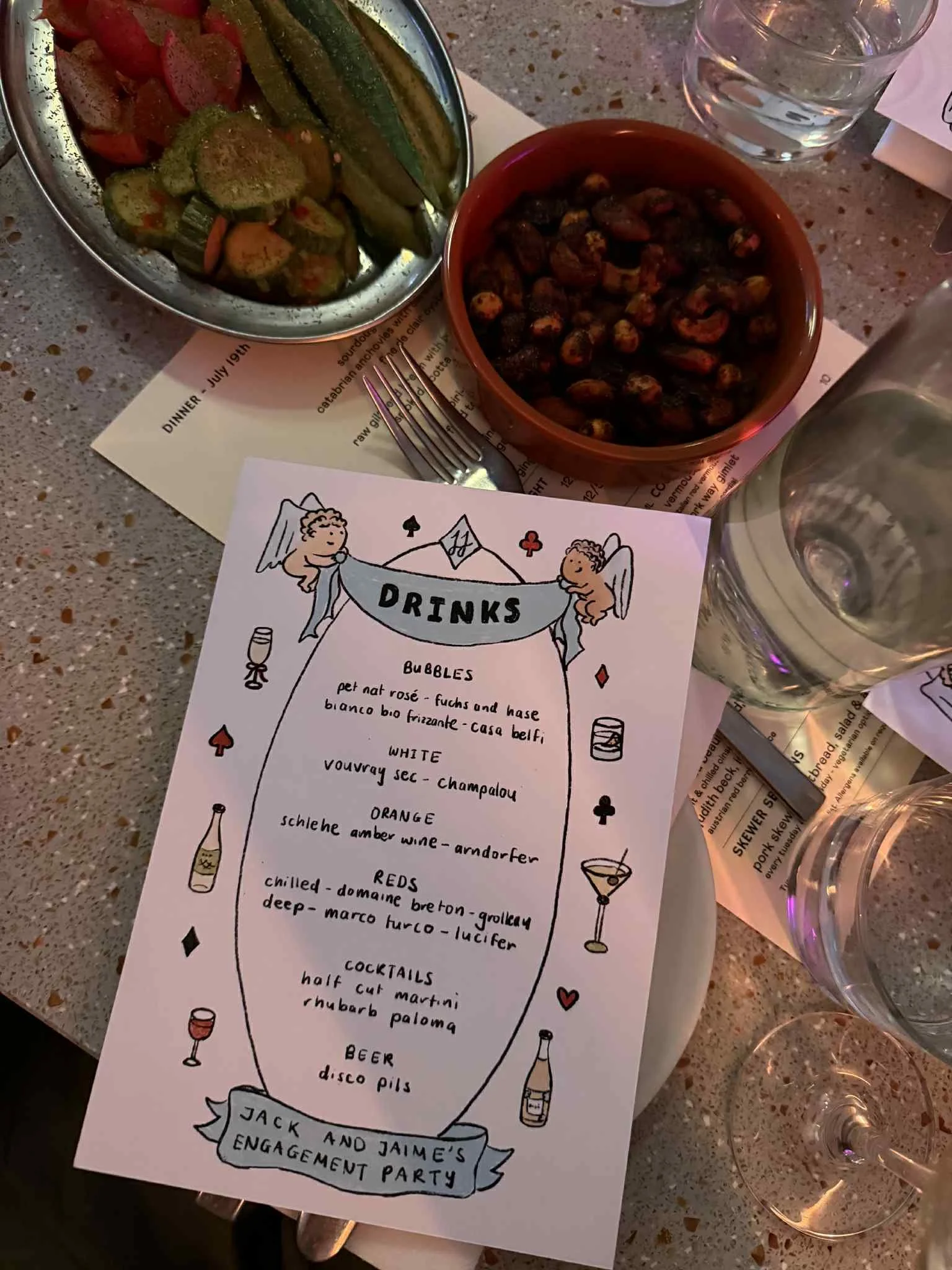 We had so much fun creating special stationery for J&J’s chic and intimate engagement party at London wine bar Half Cut Market.