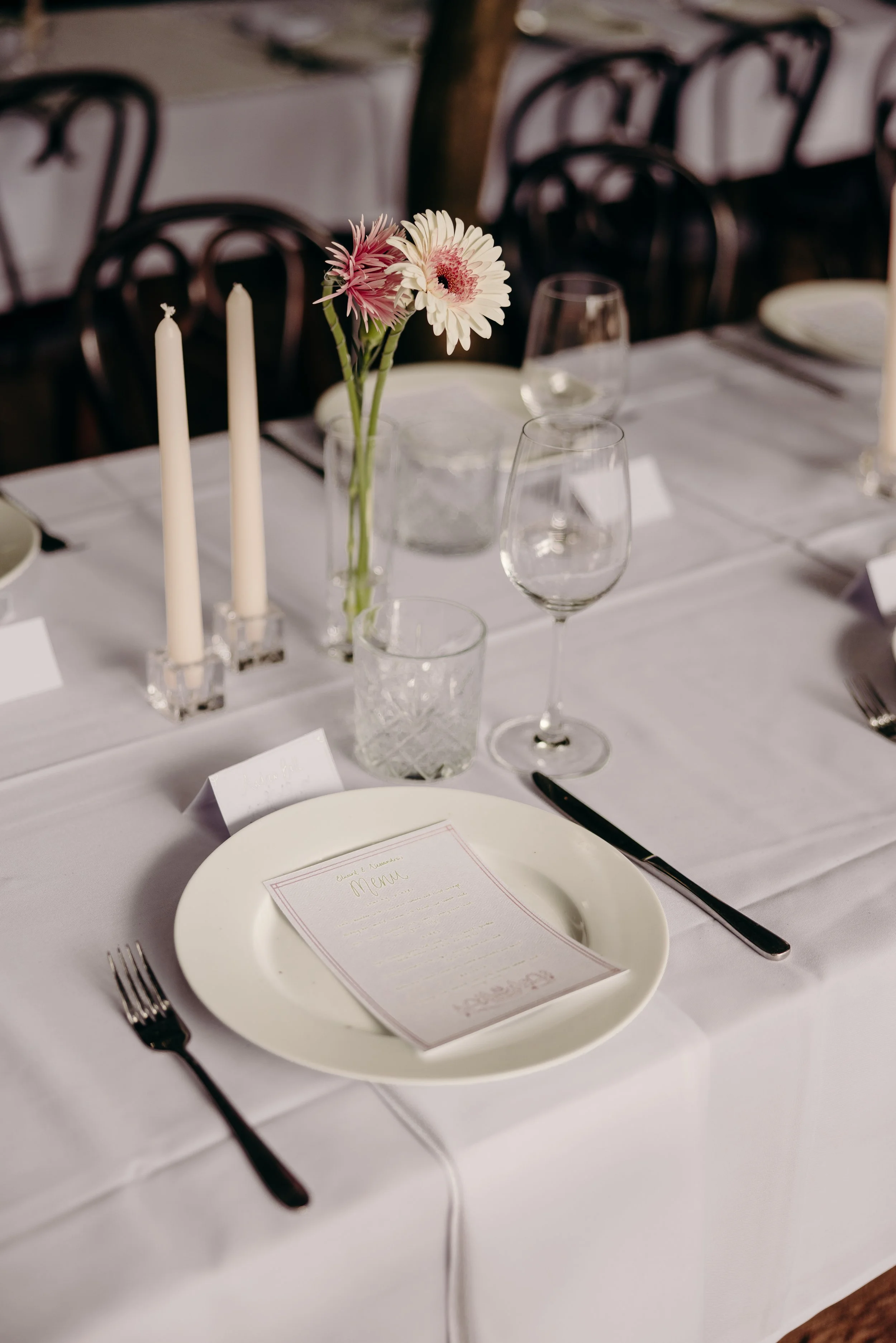 Colourful and playful menus and name tags perfectly matched the vibe of their reception, and we tied everything together with matching thank you cards.